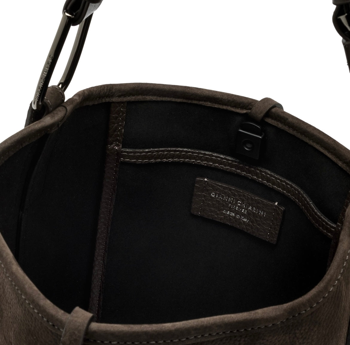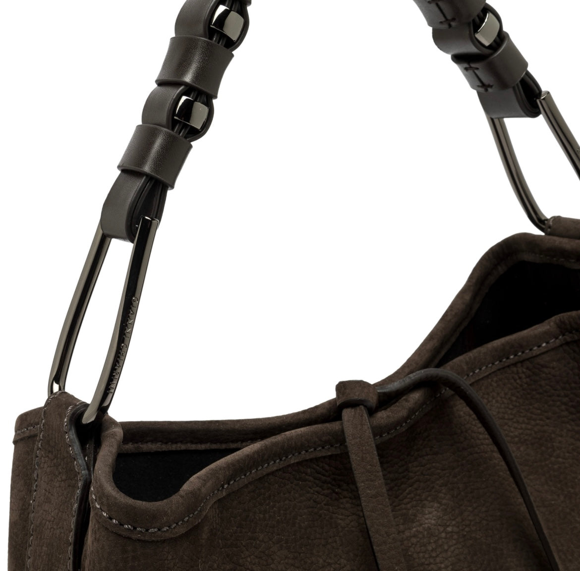 Eliana zeichnet sich durch ihr essenzielles Design aus, mit einfachen, aber raffinierten Linien. Gefertigt aus Nubukleder und mit einer weichen Silhouette ist sie das ideale Accessoire, um einen lässigen Alltagslook zu vervollständigen. Der geflochtene Henkel verleiht der Tasche einen modernen Touch, während der verstellbare und abnehmbare Trageriemen für Vielseitigkeit sorgt. Maße: 20x33x15 cm.