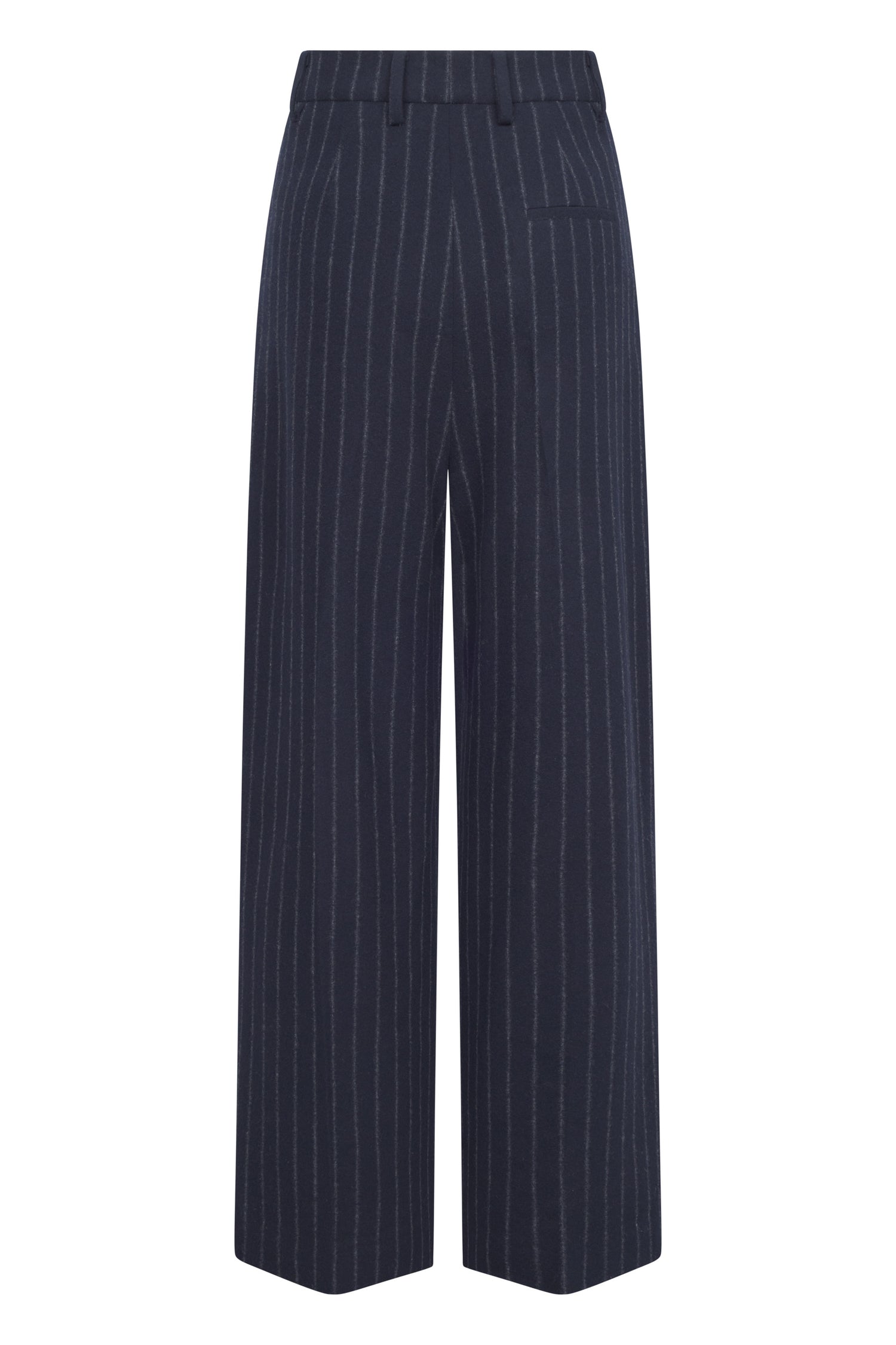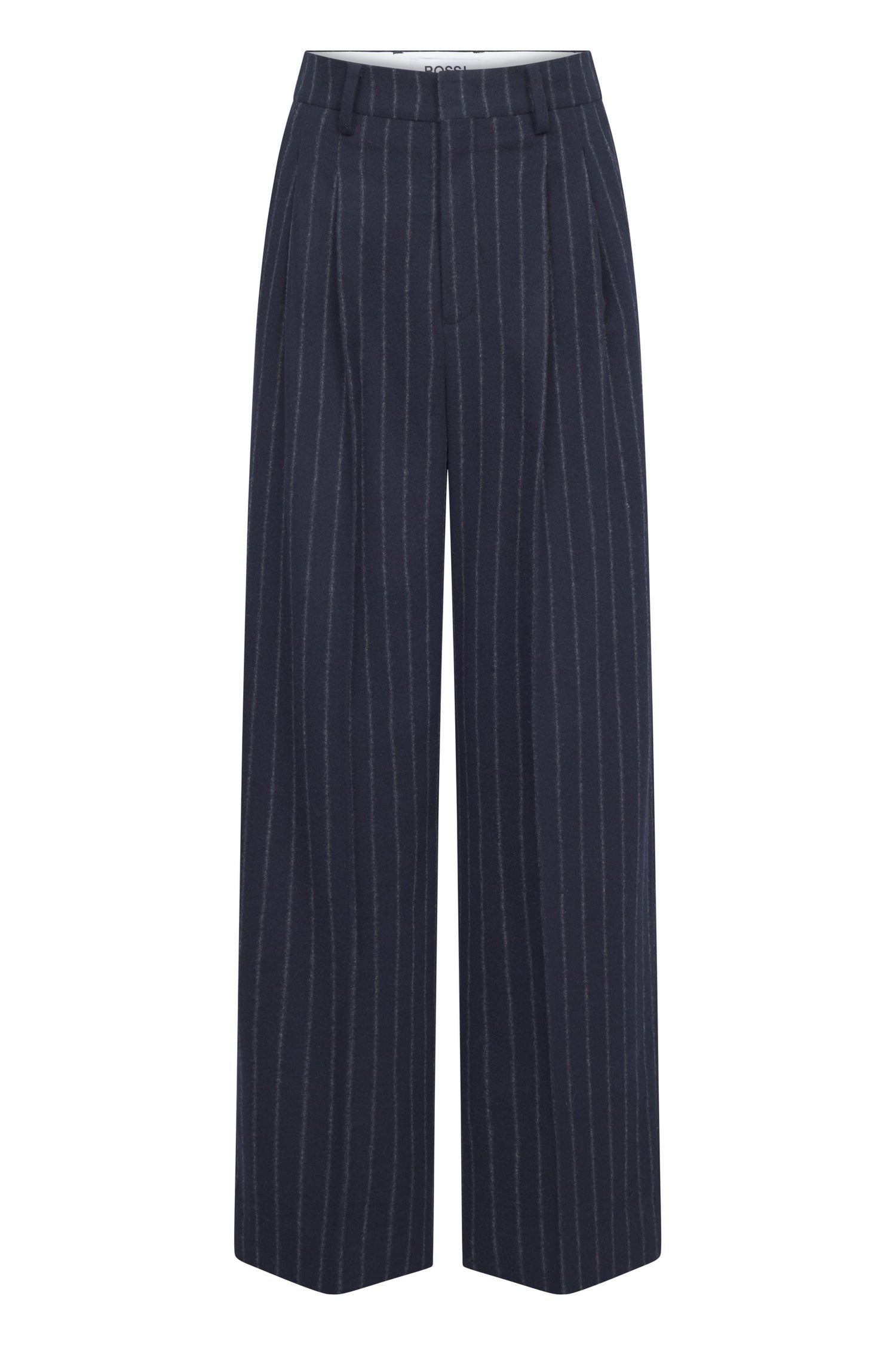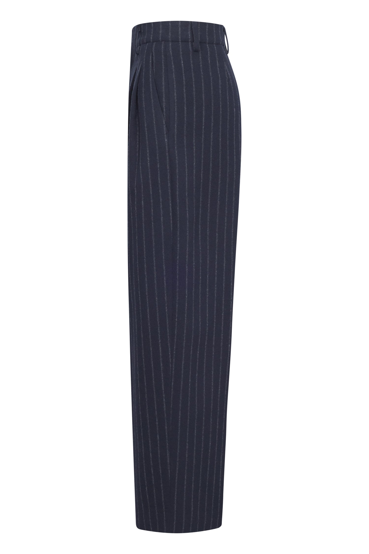Modell: Bundfaltenhose Gerader, weiter Beinverlauf Leistentaschen hinten Verstellbarer Innenbund für perfekte Passform Made in Europe Artikel: Flanell Wollmischung Melierter Nadelstreifen Querelastisch Leibhöhe: 35 cm Fußweite: 56 cm Schrittlänge: 80 cm