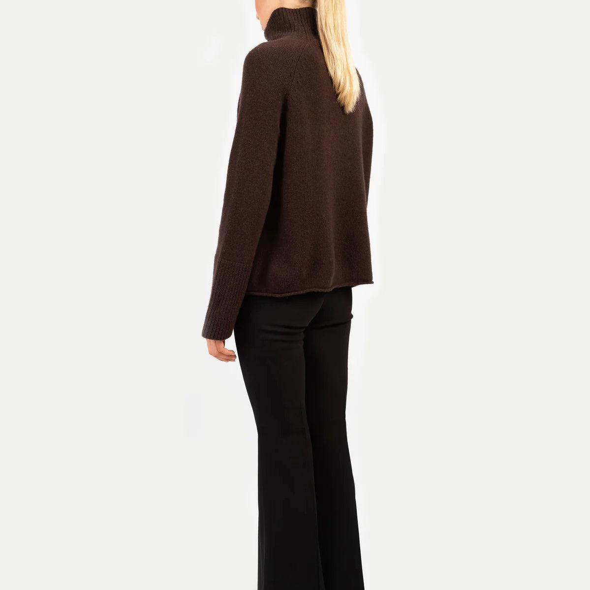 Rollkragenpullover in Dunkelbraun, glatt gestrickt,